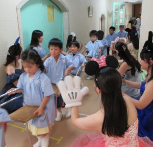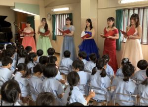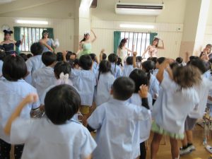 今年も、フェリス女学院大学の音楽を専攻しているお姉さんたちが、子どもたちのためにコンサートを催してくださいました。子どもたちは、自分で作った楽器を持って参加して、歌ったり、踊ったりして、生演奏の楽器、声楽に触れあいました。